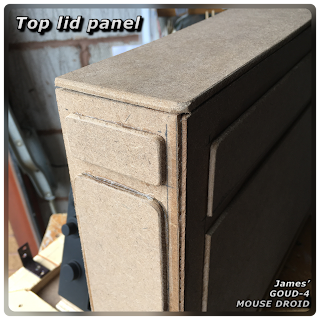 There are two additional small pieces that fit on the lower side panel, these I’ll add later. Last piece was to cut the top ‘lid’ panel. I’ve rounded the edges.