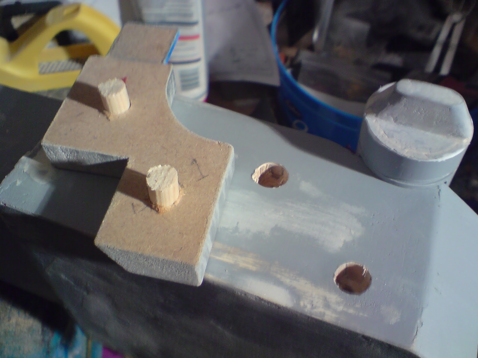 working on leg. Sanding then more wood filler. Made the counter sunk holes